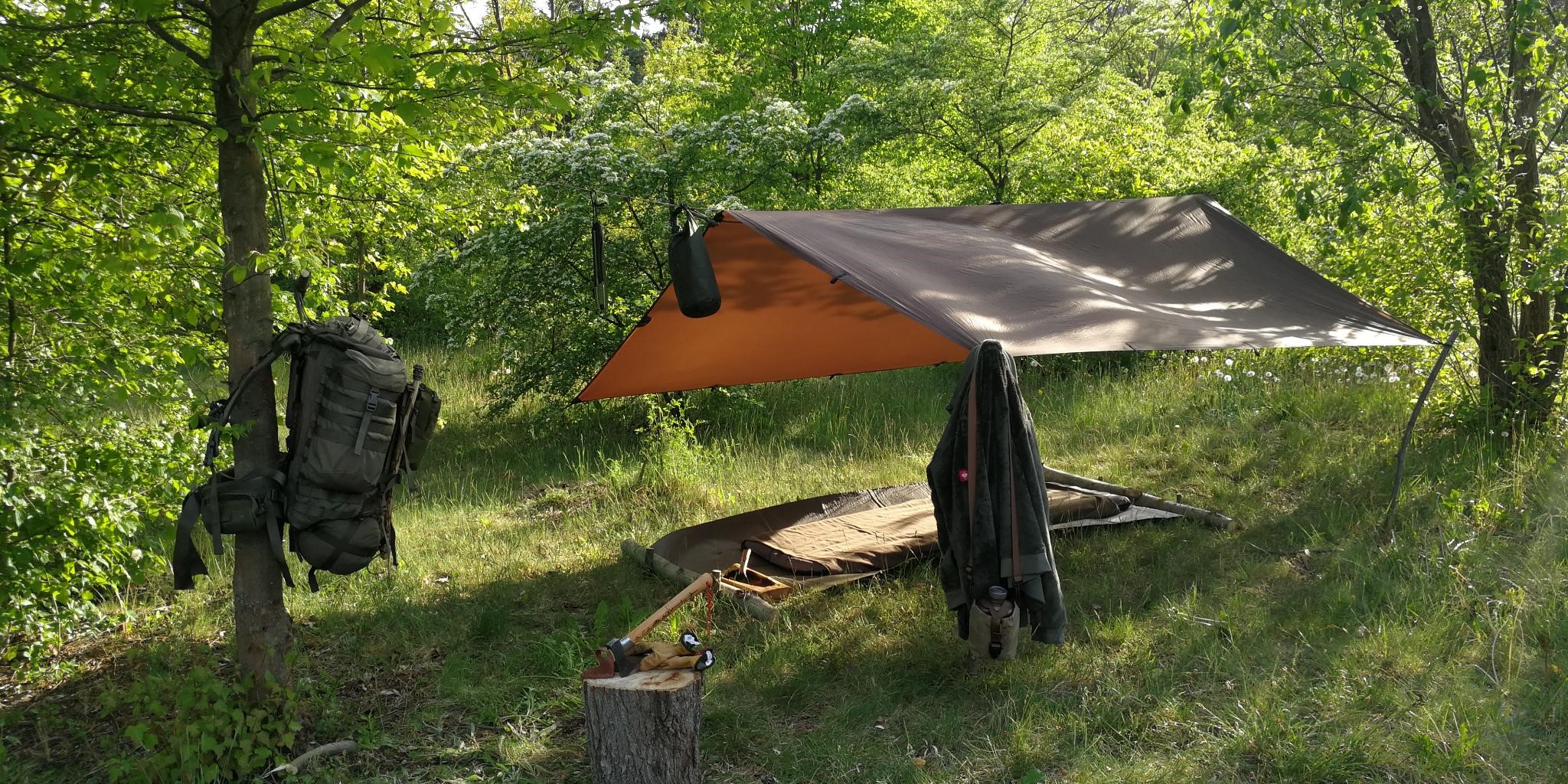 Wer ein wenig mehr in der Natur sein möchte, kann das Zelt durch eine einfache wetterfeste Plane ersetzen. Von der einfachen Baumarktplane bis zum speziell für den Outdoor-Bereich hergestellten Tarp, gibt es eine Vielzahl an diversen Angeboten.