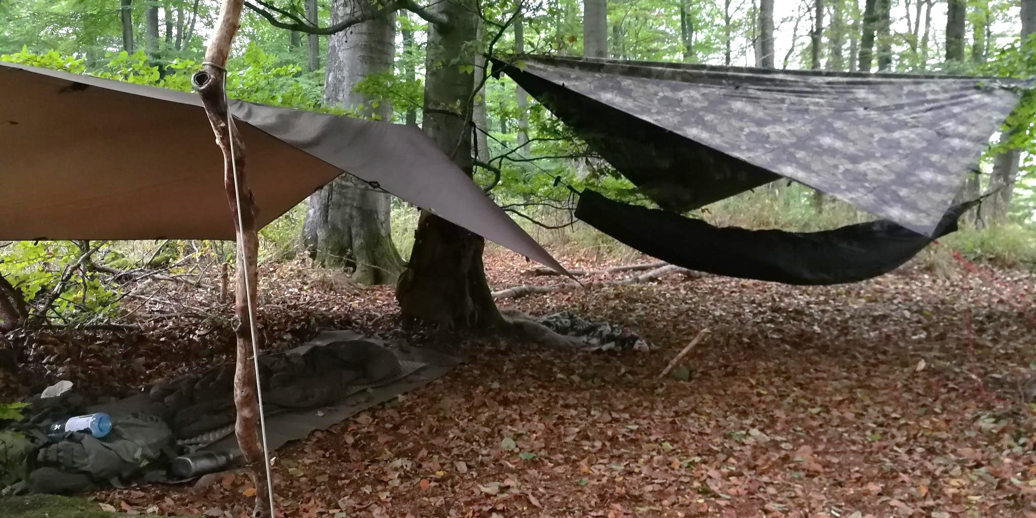 Bei Bushcraftern ist das Tarp besonders beliebt in Kombination mit einer Hängematte.